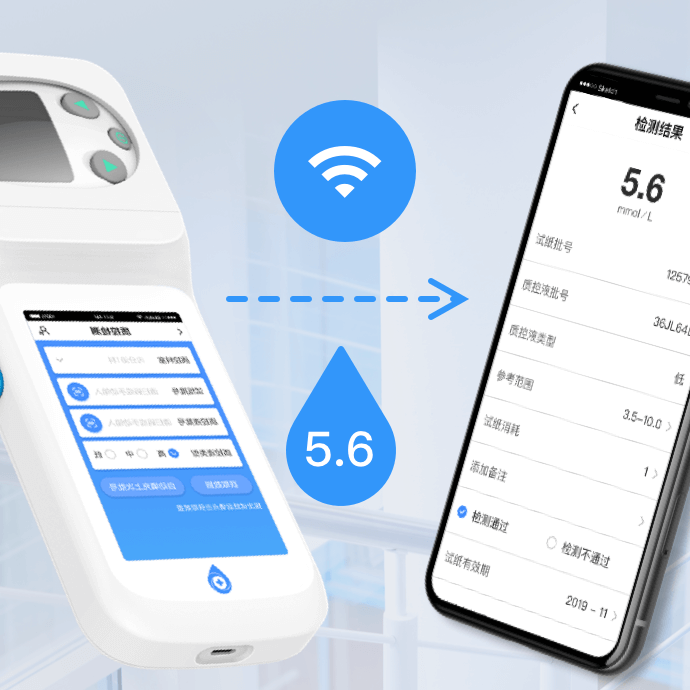 检测结果通过蓝牙、WIFI自动传输至移动端及服务器 Automatic transfer of results to mobile terminals and servers via Bluetooth or WiFi